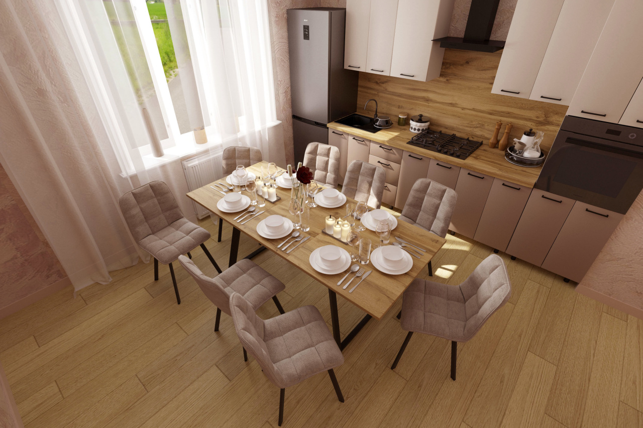 В сложенном виде стол подходит для повседневного использования. При необходимости площадь столешницы увеличивается благодаря раскладному механизму, что позволяет разместить больше гостей.