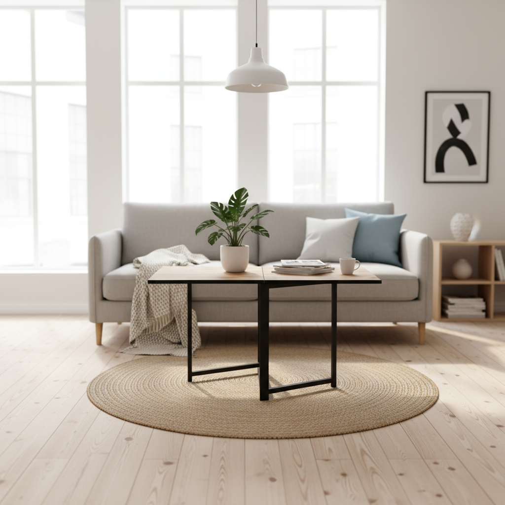 Для небольших гостиных, студий, зон отдыха у окна — везде, где важна каждая единица площади, этот столик становится не просто мебелью, а инструментом.